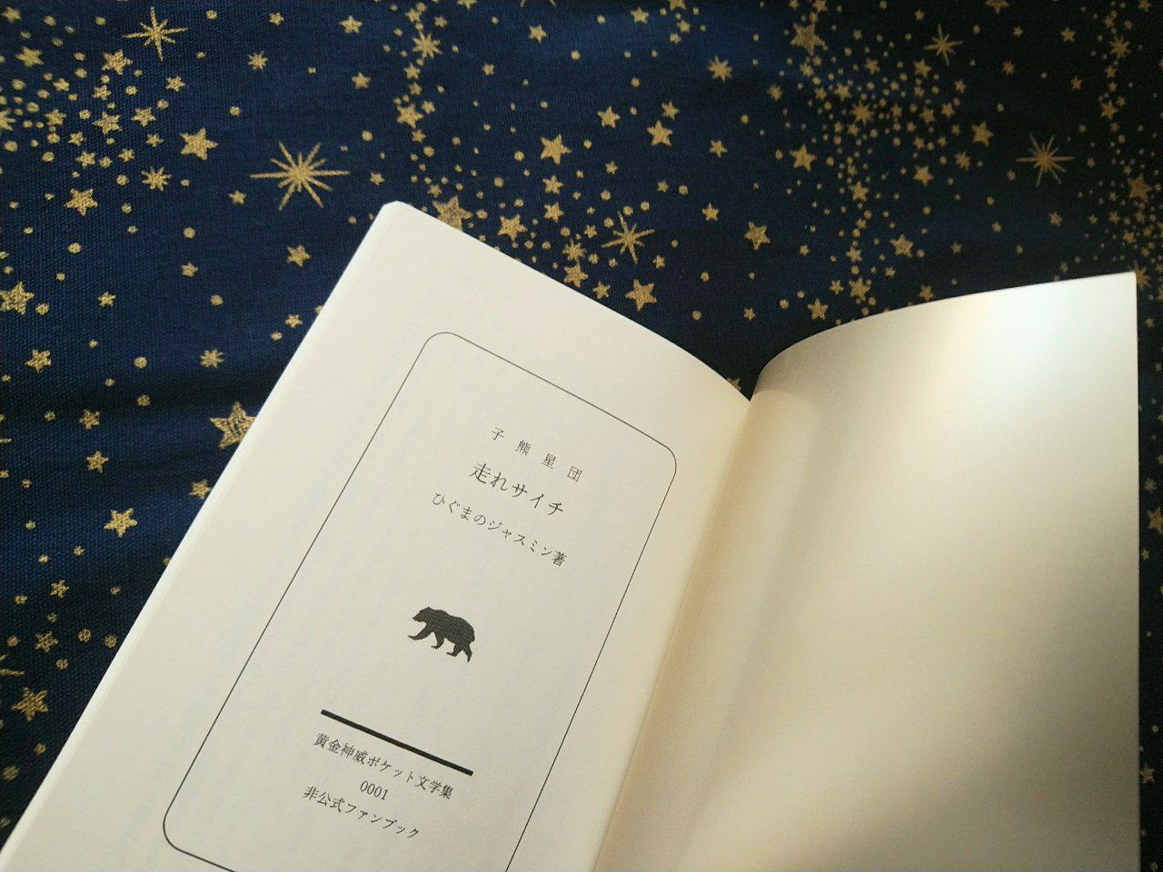 STARBOOKS様:初めての小説同人誌を作りました。WEBサイトがとても分かりやすく、入稿後の対応も丁寧でした。本文に淡クリームキンマリ62kという小説向きの薄い紙が選べるのも推しポイントです。マット感優先の本文印刷が、オンデマンドでもオフセットのような仕上がりで最高です。表紙用の特殊紙や箔の種類が多いのも大変魅力的です。